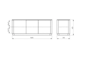Высота: 61,5 см. Ширина:160 см. Глубина: 51 см. Покрытие эмаль, RAL 7044. Материал: бук, мдф, внутри лдсп