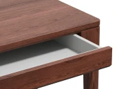 Материалы и покрытие: Ножки и каркас - массив дуба Столешница - МДФ, натуральный шпон дуба Внутренний корпус и ящики - ЛДСП, серый Покрытие - тонировка, матовый лак Направляющие - полновыдвижные, плавные (2 ящика)