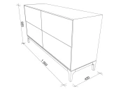 Материалы, покрытие и фурнитура: Ножки и каркас - массив дуба Внешний корпус и фасады - МДФ, натуральный шпон дуба Покрытие - тонировка, матовый лак Внутренний корпус и ящики - ЛДСП, серый Направляющие - полновыдвижные, push to open (4 ящика)