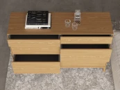 Материалы, покрытие и фурнитура: Ножки и каркас - массив дуба Внешний корпус и фасады - МДФ, натуральный шпон дуба Покрытие - тонировка, матовый лак Внутренний корпус и ящики - ЛДСП, серый Направляющие - полновыдвижные, push to open (6 ящиков)