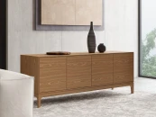 Материалы, покрытие и фурнитура: Ножки и каркас - массив дуба Внешний корпус и фасады - МДФ, натуральный шпон дуба Покрытие - тонировка, матовый лак Внутренний корпус и ящики - ЛДСП, серый Петли - push to open (4 фасада)