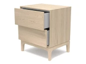 Материалы, покрытие и фурнитура: Ножки и каркас - массив дуба Внешний корпус и фасады - МДФ, натуральный шпон дуба Покрытие - тонировка, матовый лак Внутренний корпус и ящики - ЛДСП, серый Направляющие - полновыдвижные, push to open (2 ящика)
