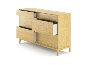 Материалы, покрытие и фурнитура: Ножки и каркас - массив дуба Внешний корпус и фасады - МДФ, натуральный шпон дуба Покрытие - тонировка, матовый лак Внутренний корпус и ящики - ЛДСП, серый Направляющие - полновыдвижные, push to open (6 ящиков)