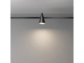 Арматура и плафоны конической формы из алюминия в двух цветах – черном и латунь. Опаловый рассеиватель. Долговечные энергосберегающие источники LED-света бренда Osram. Цветовая температура 3000К, угол рассеивания 120гр, коэффициент цветопередачи >90. Крепление магнитами на шинопровод с возможностью легкого перемещения светильников вдоль шины. Функция диммирования в группе возможна только в сочетании с блоками DALI/0~10V.