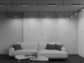 Корпус из экструдированного алюминия. Два варианта цветового исполнения – черный и латунь, которые отлично сочетаются как по отдельности, так и вместе. Рассеиватель из матового поликарбоната. Источник света – светодиоды Osram с цветовой температурой 3000К, углом рассеивания – 120гр, индекcом цветопередачи выше Ra 90. Предусмотрена функция диммирования в группе при использовании блоков питания DALI / 0~10V. Благодаря удлиненному корпусу (232 мм) светильники данной серии подходят для общего освещения.