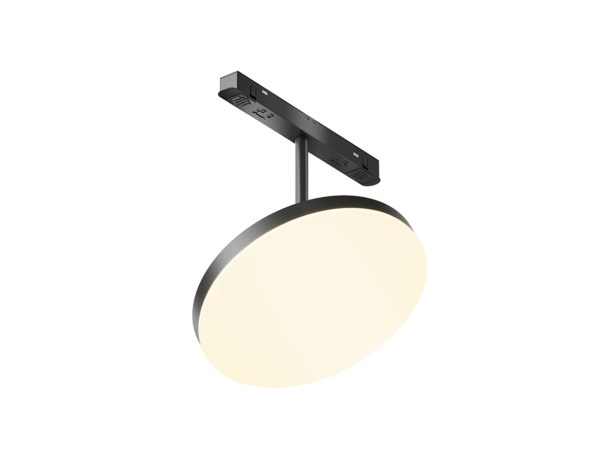 Корпус из алюминия. Два цвета арматуры – черный (порошковое окрашивание) и латунь (гальваническое покрытие), отлично сочетающиеся между собой. Светильник с плоской конструкцией. Две модификации: с прямым световым потоком и с подсветкой. Источник света – светодиоды Osram с цветовой температурой 3000К, углом рассеивания 120 гр. Фиксация на шинопровод производится посредством надежных неодимовых магнитов. Светильники свободно перемещаются на шине в произвольном направлении. Функция диммирования поддерживается только в связке с блоками питания DALI/0~10V.