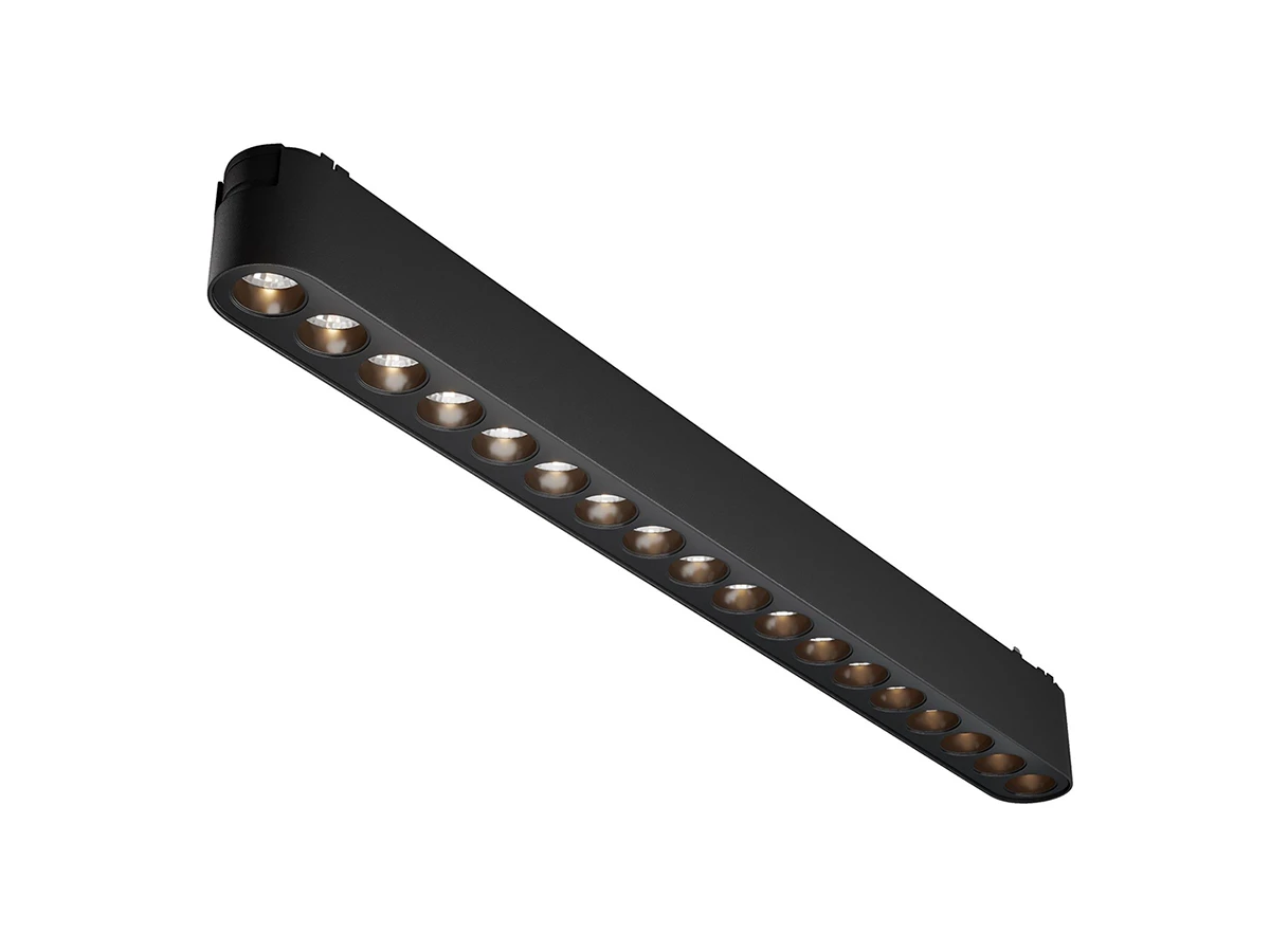 Алюминиевый трековый светильник в черном стиле. Узкий угол рассеивания и несколько вариантов цветовой температуры на выбор (от 2700 до 4000 К). Поддержка функции диммирования в паре с блоком питания Triac/0~10V. Серия совместима с трековой системой Levity. Уникальный эффект «света ниоткуда» с источником, остающимся незамеченным даже при включении.