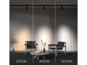 Базовый светильник для акцентной или направленной подсветки. Прочный металлический корпус в двух базовых цветах — черный и белый. Профессиональная оптика — линза для направленной подсветки. Три варианта мощности и размера. Гибкий угол вращения у основания модели на 355гр в горизонтальной плоскости и 90гр в вертикальной позволяет настроить четко направленный поток света. Цветовая температура регулируется с помощью переключателя - 2700К, 4000К, 5000К. Встроенный LED-источник света утоплен в корпусе. Низкий уровень слепимости. Высокий индекс цветопередачи CRI>90. Сменные линзы и фильтры из дополнительного ассортимента позволят изменить стандартный угол 36гр на выбор от 15гр до 50гр и сделать освещение более комфортным.