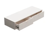 Туалетный столик представляет собой стильное и функциональное дополнение к спальной комнате. Изготовленная из матового ЛДСП с рельефными фасадами из МДФ, этот столик сочетает в себе современный дизайн и практичность. Ее компактные габариты (105 см в ширину, 39 см в глубину и 21 см в высоту) делают ее идеальным выбором для небольших пространств. Выдвижные ящики беспечивают достаточно места для хранения различных предметов, таких как книги, очки, ноутбуки или другие предметы, которые могут быть удобно доступны постели. Рефлексия фасадов добавляет интересный визуальный акцент, делая этот столик не только практичным, но и стильным. Этот столик станет отличным дополнением к современному интерьеру спальни, обеспечивая удобство и эстетическое удовольствие