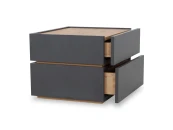 Тумба прикроватная с двумя ящиками. Выполнена из ЛДСП, дно ящиков ДВПО. Ящики на скрытых направляющих Push to open. Наличие фетровых подпятников.