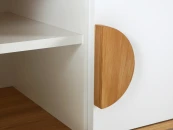 Cresco — стильная коллекция корпусной мебели для хранения вещей. Идея дизайна — нескучный минимализм. С одной стороны — практичность, спокойный внешний вид, универсальность. С другой — смелость, контрастность, оригинальность. Четкая геометрия корпуса и круглые ножки из бука, рельефная и гладкая части фасада, ассиметричное расположение ручек-полумесяцев — эти элементы отвечают за интересный внешний вид, который наполнит ваш интерьер разнообразием, ритмичностью, фактурами, акцентами.