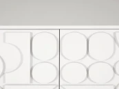 Milton — линейка корпусной мебели для хранения с динамичным характером. Яркой чертой дизайна являются геометрические фигуры, закреплённые на фасадах и боковых стенках. Они придают изделиям рельефность, оригинальность, выразительность. Серванты, комоды, тумбы напоминают объёмные 3-D головоломки. Архитектура которых строится на комплиментарности контрастов. Колоритный «верх» балансирует на изящных ножках из металла. Фасады без ручек открываются с помощью механизма «нажал-открыл».