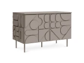 Milton — линейка корпусной мебели для хранения с динамичным характером. Яркой чертой дизайна являются геометрические фигуры, закреплённые на фасадах и боковых стенках. Они придают изделиям рельефность, оригинальность, выразительность. Серванты, комоды, тумбы напоминают объёмные 3-D головоломки. Архитектура которых строится на комплиментарности контрастов. Колоритный «верх» балансирует на изящных ножках из металла. Фасады без ручек открываются с помощью механизма «нажал-открыл».