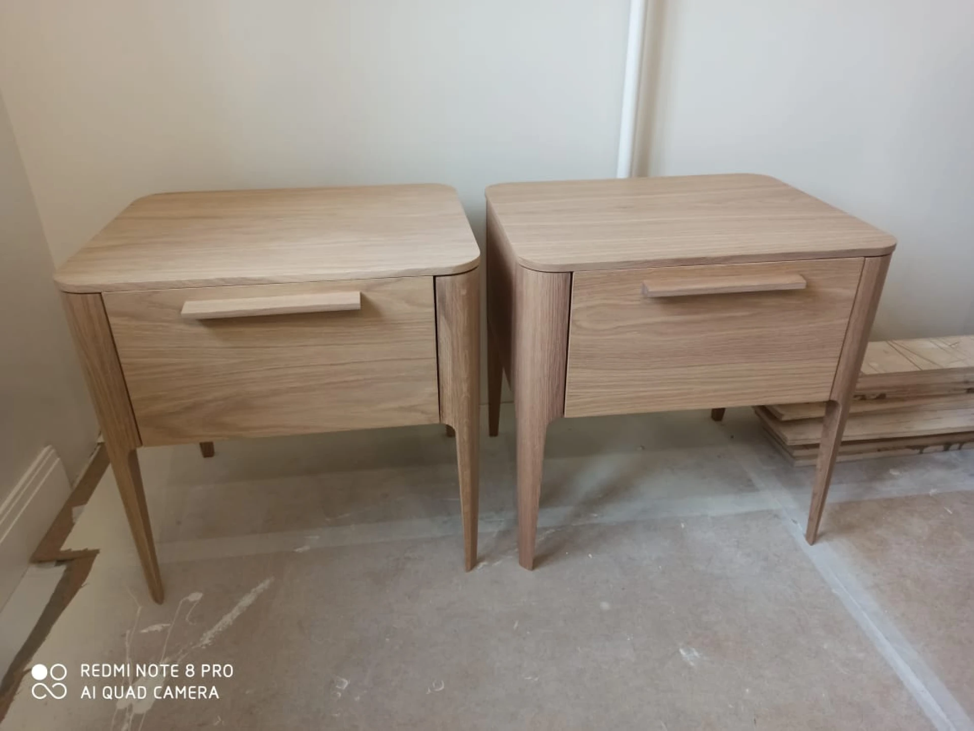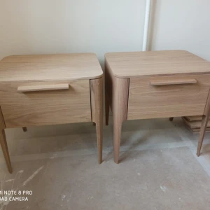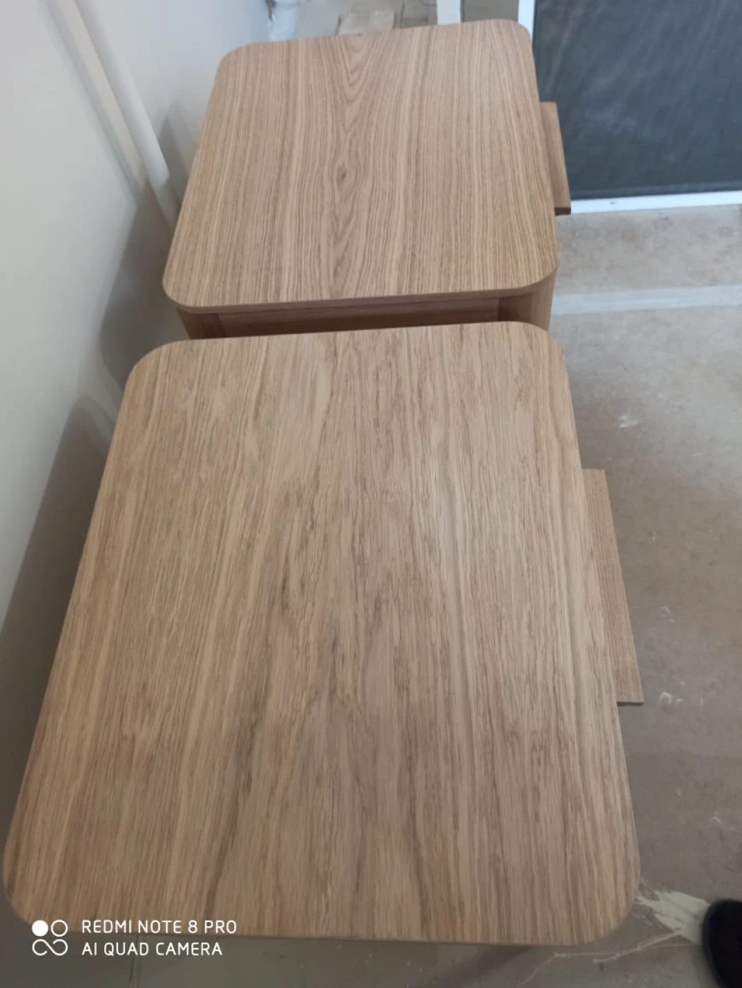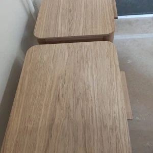 При производстве используется шпон натурального дуба, покрытие эмаль RAL 7044. Коробка 1: 54*40*10, Коробка 2: 55*45*14