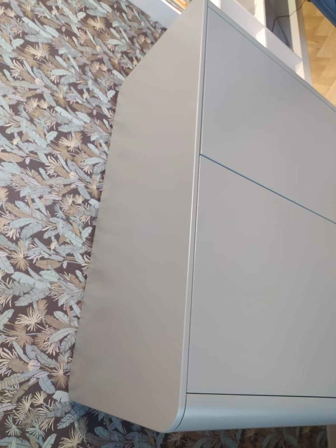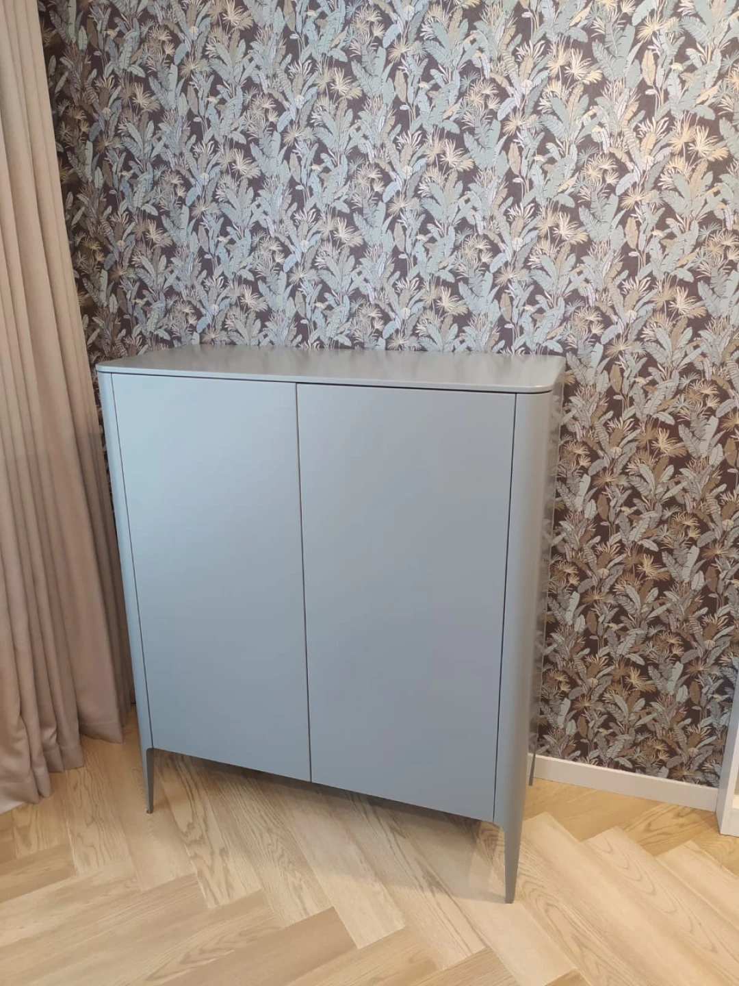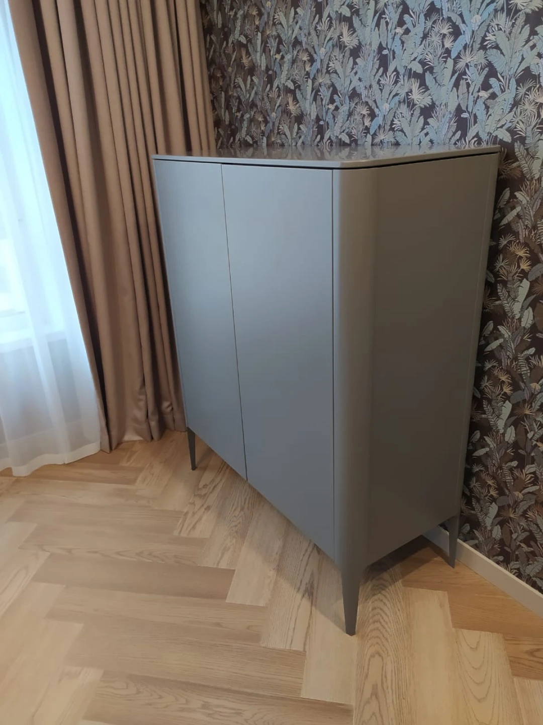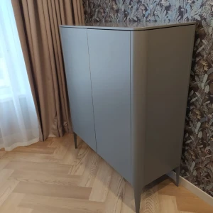 Высота: 120 см. Ширина:100 см. Глубина: 45 см. Покрытие эмаль, RAL 7037. Материал: бук, мдф, внутри лдсп