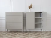 Высота: 120 см. Ширина:100 см. Глубина: 45 см. Покрытие эмаль, RAL 7044. Материал: бук, мдф, внутри лдсп