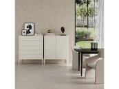 Высота: 120 см. Ширина:100 см. Глубина: 45 см. Покрытие эмаль, NCS S 0804-Y30R. Материал: бук, мдф, внутри лдсп