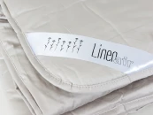 Ценность натурального льна в его природных свойствах. Этот экологичный и безопасный наполнитель подушек и одеял имеет надёжную долгую историю. Ткань чехла — сатин, 100% хлопок, однотонный хаки. Одеяло с эксклюзивной стёжкой. Декор: кант и окантовка из основной ткани, вшивной уголок с дизайнерской тематической печатью. Наполнитель одеяла: термополотно с льняным волокном, плотность 300г/м2. Ткань чехла - хлопок 100% (сатин).