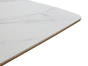 Столешница выполнена из белой матовой керамики на основе из МДФ с отделкой натуральным шпоном дуба. Такая комбинация материалов не только подчёркивает утончённый внешний вид, но и обеспечивает высокую устойчивость к механическим повреждениям, термическому воздействию и загрязнениям. Материал основания - МДФ облицованный натуральным шпоном дуба.