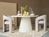Архитектура стола смотрится легко и визуально не перегружает пространство. Цилиндрическое основание поддерживает овальную столешницу, образуя пространство для эргономичной расстановки стульев. Округлые формы в интерьере располагают к непринужденности, спокойствию, простоте взаимодействия. Добавляют в интерьер чувство безопасности, баланса, размеренности. Стол Menvix — эстетичный выбор для кухни, обеденной зоны в гостиной, студии. Меняйте его настроение с помощью текстиля. Используйте скатерти, раннеры, тканевые салфетки, чтобы добавить ему яркости, объёма, акцентов.