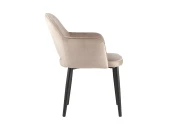 Интересное сочетание современного дизайна и вневременной мебельной классики. Обивка из мебельной велюровой ткани, мягкой, бархатистой и очень приятной на ощупь. Мебельная ткань велюр - очень практичная и устойчивая к истиранию. Ножки: металлические, черного цвета.