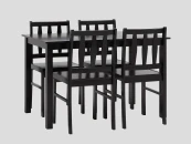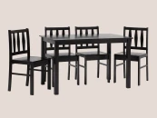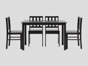 Стулья и ножки стола выполнены из массива дерева гевеи, которое отличается высокой влагостойкостью, устойчивостью к изменениям температур и прочностью. Цвет стульев и стола - темно-коричневый, классический вариант для любой современной кухни.