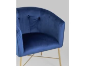 Современное кресло с подлокотниками и металлическими ножками. Обивка выполнена из прочного и износостойкого велюра. Широкая спинка, переходящая в подлокотники, и мягкое сиденье обеспечивает удобную посадку и уют. Украшает кресло декор на внутренней стороне спинки и металлический каркас в золотом цвете.