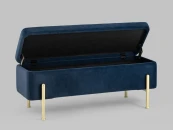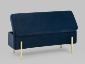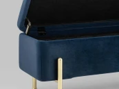 Стильная модель банкетки в обивке из мягкого велюра, прекрасно дополнит интерьер спальни или прихожей. Изящные ножки выполнены из металла в золотом цвете. Под сидением имеется ящик для хранения необходимых вещей. На ножках предусмотрены мягкие накладки, которые предотвращают повреждения напольного покрытия.