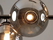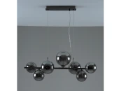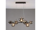 Современный подвесной светильник серии Molly. Оригинальный и лаконичный дизайн в металлическом каркасе чёрного цвета украшенный сферическими плафонами. В качестве источника света можно использовать лампы накаливания или LED с цоколем G9. Вся конструкция надежно крепится на планку. Данная модель станет отличным дополнением для кухни, холла или гостиной. При монтаже светильника, высоту можно отрегулировать.