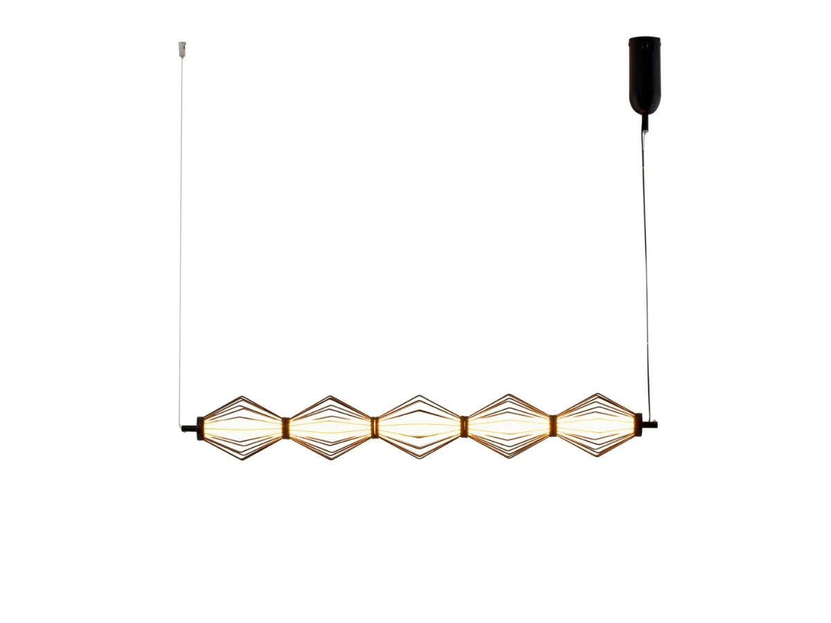 Светильник подвесной светодиодный Eloise это элегантный акцент для вашего интерьера в стиле лофт или модерн. Его уникальный дизайн сочетает строгие линии металлического корпуса с прозрачными элементами, создавая эффект лёгкости и воздушности.Стильный дизайн.Светильник выполнен в форме вытянутого ромба из черной металлической сетки, которая придает изделию индустриальный вид. В центре размещен источник света, который создает теплое атмосферное освещение. Контраст черного и прозрачных элементов вносит в интерьер элементы минимализма и современности.Эффективное освещение и удобство. Светильник оснащен одной LED лампой мощностью 5 Вт, которая освещает площадь до 2 кв.м. Это идеальный выбор для акцентного освещения, создавая уют в маленьких пространствах или в качестве декоративного элемента на кухне, в кафе или в гостинице.Регулируемая высота для удобства. Светильник можно легко регулировать по высоте, что позволяет адаптировать его под любые условия помещения. Это делает его универсальным выбором для различных стилей интерьера.