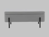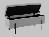 Функциональный акцент интерьера.Банкетка Болейн сочетает в себе лаконичный дизайн и продуманную функциональность. Обивка из мягкого велюра в сером оттенке придаёт ощущение уюта. Контрастные металлические ножки чёрного цвета подчёркивают современный характер модели и визуально облегчают конструкцию.Продуманные детали для вашего удобства.Размер банкетки (42?110?42 см) оптимален для размещения в гостиной, спальне, прихожей или детской. Внутри спрятан вместительный ящик для хранения вещей – от пледов до игрушек. Подпятники на ножках защищают пол от царапин и делают банкетку устойчивой даже при максимальной нагрузке до 150 кг.