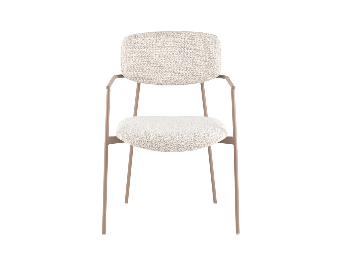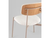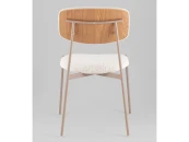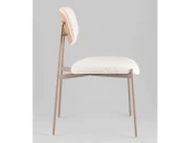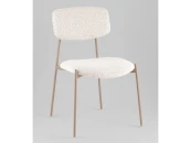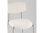 Сиденье и спинка стула выполнены из высококачественного букле в элегантном светло-бежевом цвете, который сочетает в себе уют и элегантность. Ножки стула из металла окрашены в нежный бежевый оттенок, создавая гармоничный контраст с обивкой.