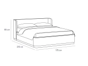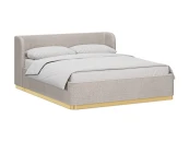 Кровать оснащена металлическим подъемным основанием с гибкими ламелями, под которым находится внутреннее отделение, предназначенное для хранения белья или других предметов. Спинка и царги кровати выполнены из плиты ЛДСтП т.22мм, брусков и березовой фанеры. Настилы из пенополиуретана и синтепона. Подиум сделан из плиты МДФ и брусков. Нижнюю часть подиума украшает металлическая лента из нержавеющей стали с покрытием «матовое золото». Дно бельевого ящика: плита ЛДСтП т.16мм «Белая Гладкая».