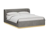 Кровать оснащена металлическим подъемным основанием с гибкими ламелями, под которым находится внутреннее отделение, предназначенное для хранения белья или других предметов. Спинка и царги кровати выполнены из плиты ЛДСтП т.22мм, брусков и березовой фанеры. Настилы из пенополиуретана и синтепона. Подиум сделан из плиты МДФ и брусков. Нижнюю часть подиума украшает металлическая лента из нержавеющей стали с покрытием «матовое золото». Дно бельевого ящика: плита ЛДСтП т.16мм «Белая Гладкая».