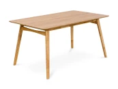 Обеденный стол. Материал столешницы МДФ с дубовым шпоном (цвет натуральный). Ножки изготовлены из цельного каучукового дерева. Толщина столешницы 1,8 см . Длина стола 150 см, ширина 90 см, высота 75 см.