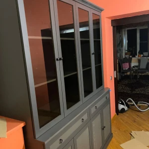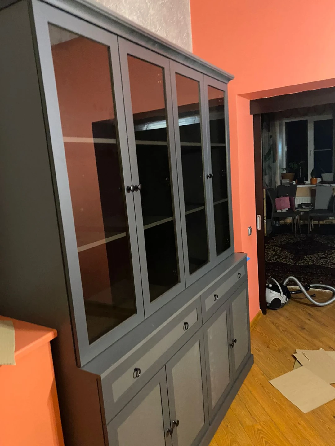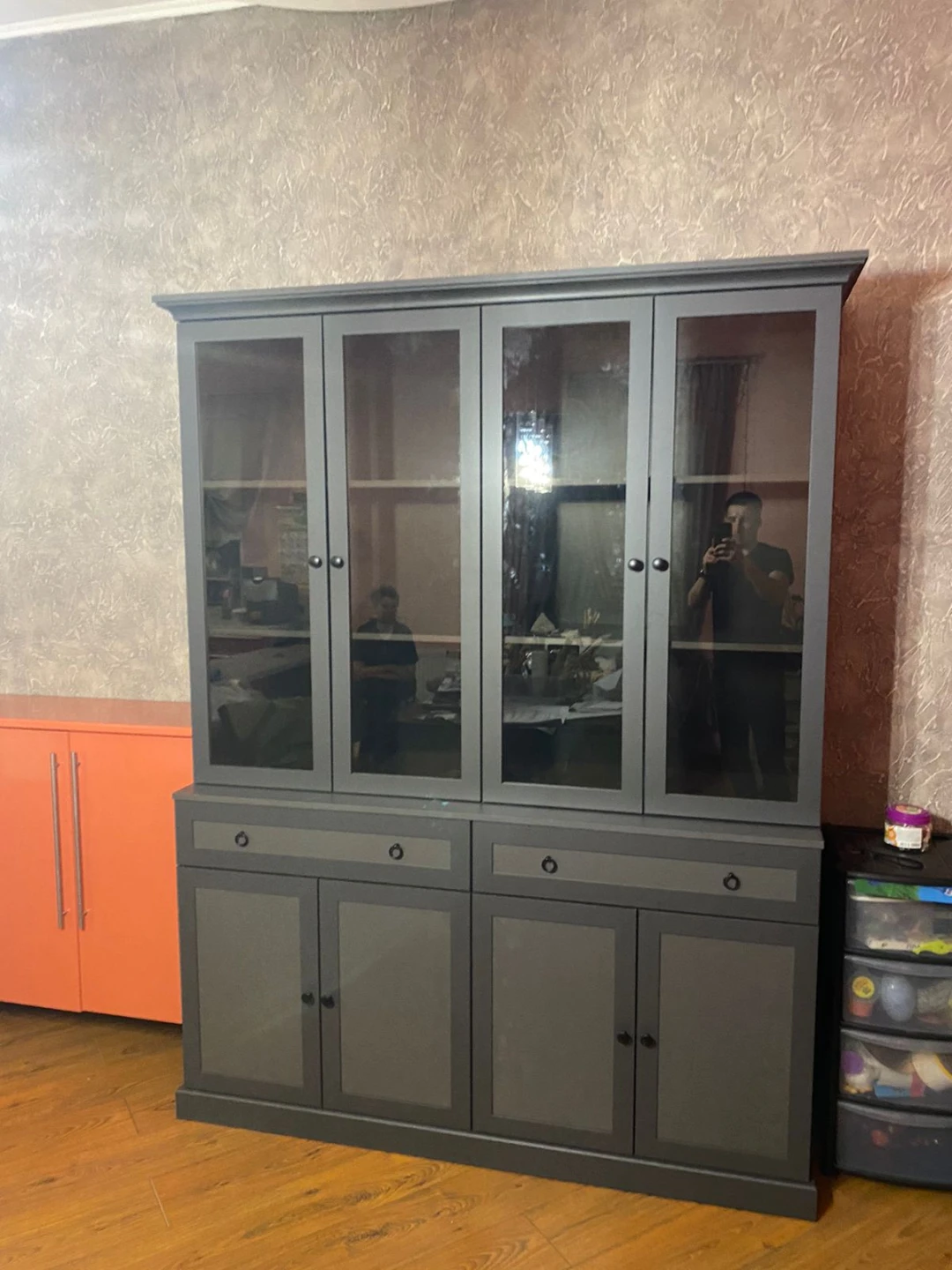 Изделие состоит из витрины, установленной на тумбу с ящиком и дверями. Верх представляет собой два отделения, каждое за двумя стеклянными дверями. В каждом отделении по две щитовые полки. Полки съемные, с перестановкой по высоте в 3 положения. Витрина Caprio предназначена ТОЛЬКО для установки на тумбу Caprio. Имеет крепления к стене только для защиты от опрокидывания. Отдельная навеска на стену не предусмотрена. Тумба состоит из двух отделений под общей крышкой. В каждом отделении ящик и две двери. За дверями съемная полка.