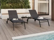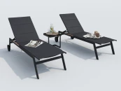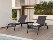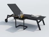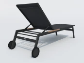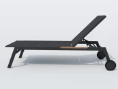 Каркас - всесезонный алюминий с порошковым напылением, двойной текстилен (двойная сетка ПВХ), встроенные подлокотники декорированы тиком, на колесах