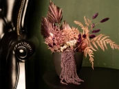 Цветочные композиции в интерьере - всегда притягивают внимание и говорят о вкусах хозяйки. Это декор для дома, который придает интерьеру завершенность и уют. Если вы хотите купить декоративные цветы для интерьера, то в каталоге магазина декора wowbotanica - вы найдете большой выбор ярких цветочных композиций в вазах и клошах. Такие цветочные композиции не требуют ухода и долго будут радовать вас своей природной красотой. Цветочная композиция с папоротником выполнена в роскошной бордовой цветовой гамме и состоит из разнообразных стабилизированных растений: гортензии, рускуса, пальмовых листьев и амаранта. Состав: пальмовые листья, стабилизированная гортензия, стабилизированные растения, стабилизированный папоротник, суккуленты, цветы.