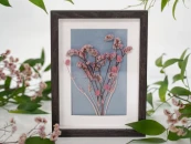Это панно воплощает собой абсолютное обояние и нежность и станет очень тёплым подарком близкому человеку или вашему интерьеру. Состав: бумага, стабилизированные растения, стекло, цветы.