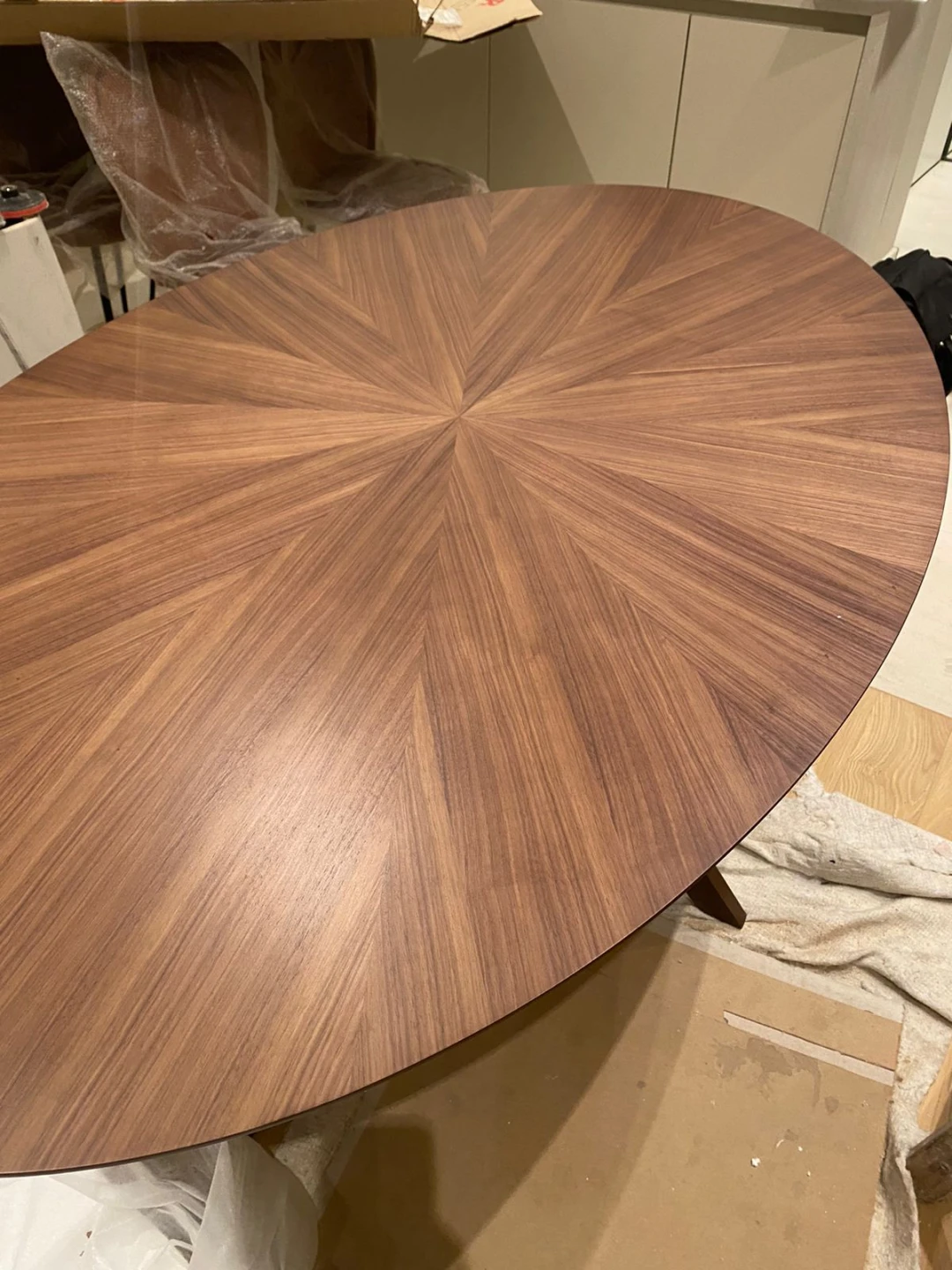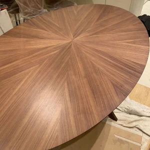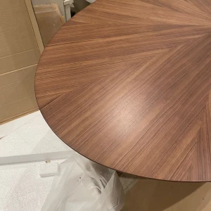 На поверхности столешницы можно разглядеть эффектный узор, имитирующий сочетание нескольких видов древесины. Ножки выполнены из массива натурального ореха. Стол отличается безопасностью, большой вместимостью и возможностью комфортно разместить гостей. Adel — образец современного «текучего» дизайна, который способен непринужденно дружить с предметами разного характера. Подходит как для неформальных обеденных зон, так и для стилистически выдержанных пространств. Материал столешницы МДФ.
