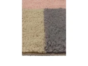 Этот шерстяной ковер, вдохновленный наполнением вашего дома цветом, отличается современным дизайном с тремя блоками в цветах базилик, мох и миндаль мороз, разделенными двумя яркими линиями: пыльно-розовый и угольно-серый.