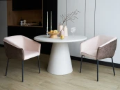 Материал обивки внутри вельвет в полоску, снаружи - экокожа. Металлические ножки черного цвета. Наличие подпятников предохраняющих от царапания пола. Размер: 56,5х58х80 см.