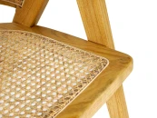Материал каркаса и ножек - массив вяза, материал сиденья и спинки - натуральный ротанг. Наличие подпятников, предохраняющие от появления царапин на полу. Не рекомендуется использование на открытом воздухе и контакт с водой.