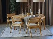 Материал каркаса и ножек - массив вяза, материал сиденья - лен, материал спинки - натуральный ротанг. Наличие подпятников, предохраняющие от появления царапин на полу. Не рекомендуется использование на открытом воздухе и контакт с водой.