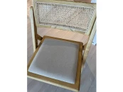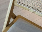 Материал каркаса и ножек - массив вяза, материал сиденья - лен, материал спинки - натуральный ротанг. Наличие подпятников, предохраняющие от появления царапин на полу. Не рекомендуется использование на открытом воздухе и контакт с водой.