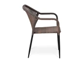 Плетеный стул с подлокотниками из искусственного ротанга палевого цвета. Имеет изящные ножки и необычное и стильное плетение спинки.
