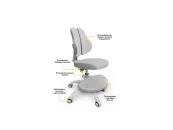Отдельного внимания заслуживает регулируемая подставка для ног. Создана из прочного пластика она легко вращается на 360 градусов. Наличие подставки позволяет использовать кресло с нерегулируемыми столами. На устойчивом основании расположены пять колесиков для лучшей устойчивости. Нейлоновые колесики оснащены автостопорами, что позволяет блокировать перемещение при небольшой нагрузке. Сзади спинки есть удобная ручка для перемещения кресла даже ребенком.