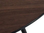 Обеденный стол в скандинавском стиле. Столешница из МДФ с меламиновым покрытием. Фактура натурального шпона, цвет тёмно-коричневый. Меламиновое покрытие отличается высокой прочностью, устойчиво к механическим воздействиям, не боится контакта с водой и моющими средствами, не выгорает.