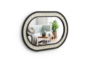 Зеркало настенное в раме. Рамка двойная, пространство между профилями декорировано искусственным ротангом. Все детали окрашены черной эмалью.
