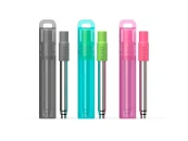 Многоразовая складная соломинка поможет наслаждаться любимыми напитками дома и на прогулке. Изделие выполнено из нержавеющей стали, устойчивой к коррозии и пищевым кислотам. В комплект входит практичная щетка для чистки соломинки. Аксессуар можно мыть в посудомоечной машине и удобно хранить в специальном кейсе с петлевым отверстием для крепления к сумке или ключам.